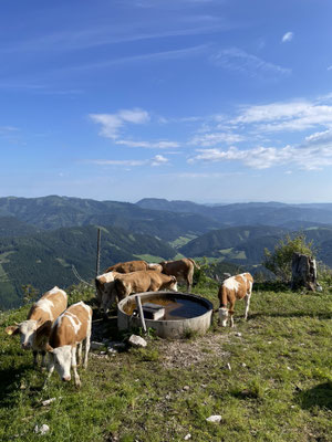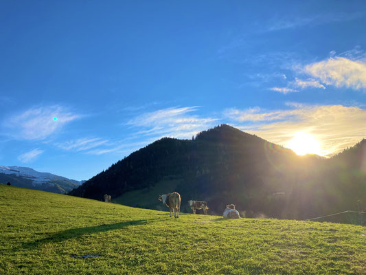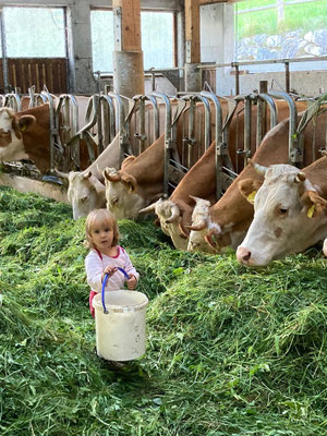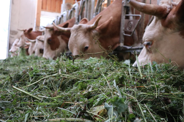 Im Stall leben rund 45 Rinder, darunter 20 Milchkühe mit Nachzucht und Ochsenmast. Wir legen großen Wert auf artgerechte Haltung: