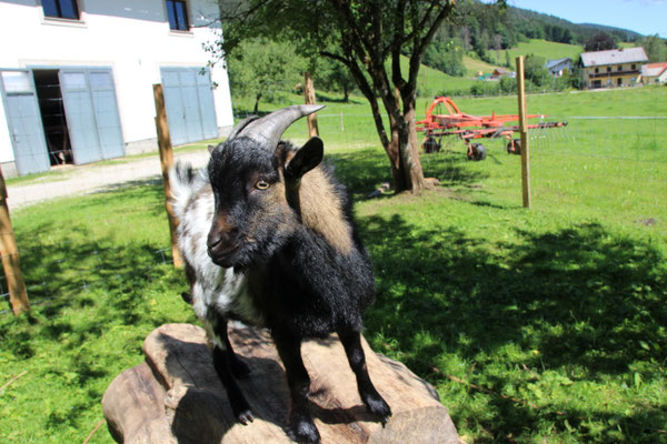 Neben den Rindern bereichern Zwergziegen, Schafe sowie Hasen und Katzen unseren Hof und sorgen für Leben und Vielfalt.